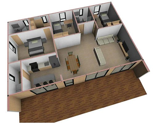 Vous pouvez remplacer les fenêtres par des baies vitrées et ajouter une ou plusieurs terrasses, un système solaire photovoltaïque, une réserve d'eau souple.